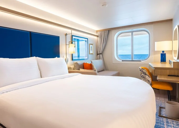 L5 - Kajuta s oknom Panoramic Ocean View 24 m². Celoplošné neotvárateľné okno, výhľad na more. 14. paluba vpredu. Max 3 osoby. 6 944 € 1 736 € za osobu