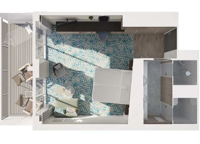 | JBBO - Junior Suite s balkónom B 26 m² + balkón 7 m² so stoličkami a podnožkami. 8-12. paluba. Max 4 osoby. Výhody Junior Suite. | 3 698 € 3 698 € za osobu |